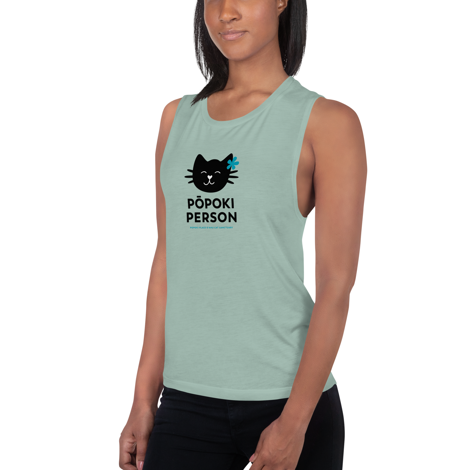 This comfortable muscle tank is soft and flowy with low cut armholes for a relaxed look.